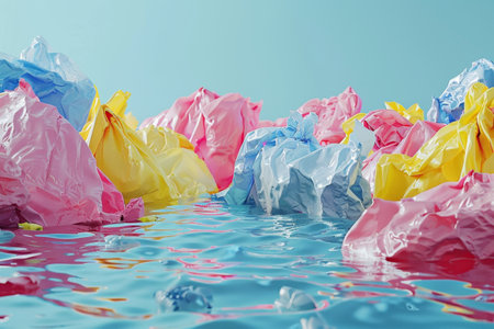 3d illustration of a pile of plastic bags floating in the water