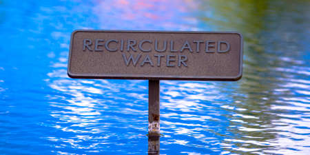 Recirculated water sign on shiny blue water