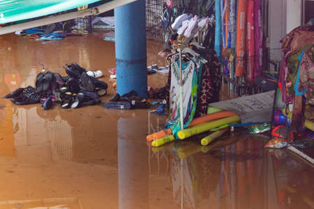 flood on the road and footpath in Thamai Chanthaburi Thailand