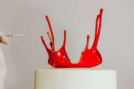 Womens hands pain a simple pattern to a ceramic teacup. Learning new skills, improving skills, hobbies. Selective focus.