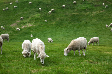 A lot sheep on the beautiful green meadow