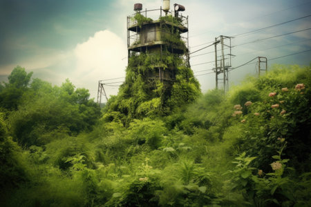 cell tower surrounded by lush greenery, created with generative ai