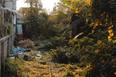 An Overgrown Garden Captured in the Golden Hour Light of the Evening Sky