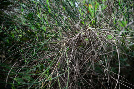 Dark green rough texture with tall grass and wild weeds from a top view perspective