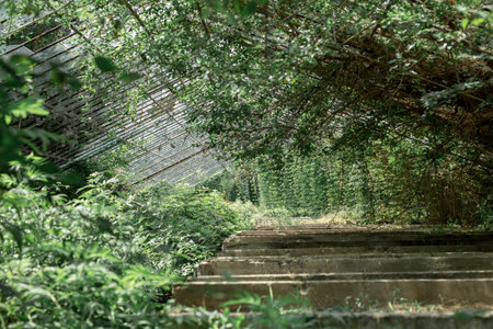 Wild grapevines taking over an abandoned greenhouse, nature touch in decay
