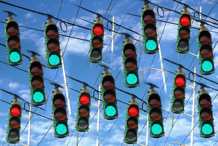 Blue sky with traffic lights