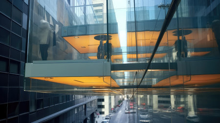 Architecture detail background. Skyscrapers exterior. Details of complex high rise building. Financial district. Glass facade building