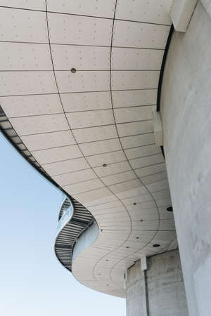Moscow, Russia - June 21, 2018: Soaring bridge in Zaryadye Park on a blue sky background