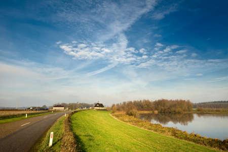 Asphalt Road along Protective Dam and Canal in the Netherlands