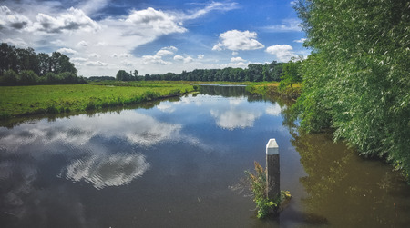 Beautiful spring landscape with green meadows and streams, in Amstelveen, Netherlands.