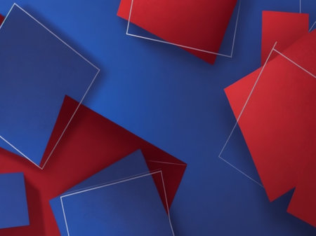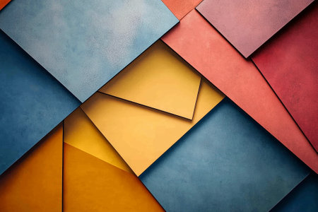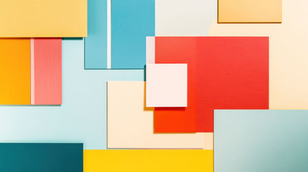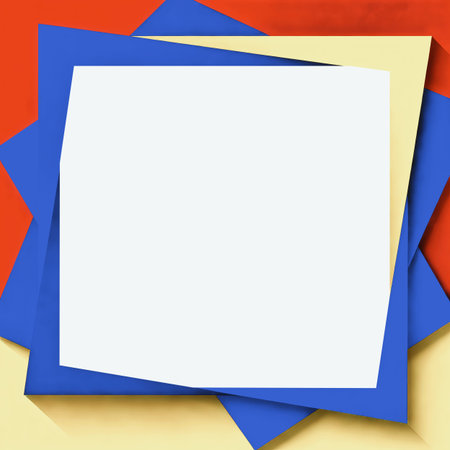 Layered red, blue, yellow, and beige paper sheets surround a large white square center, creating a bold, modern collage-like composition perfect for creative projects, backgrounds AI Generated