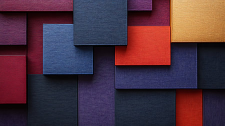 Layered geometric shapes in vibrant colors are arranged on a clean white surface creating a striking aesthetic. The composition invites exploration of color and form ideal for design inspiration.