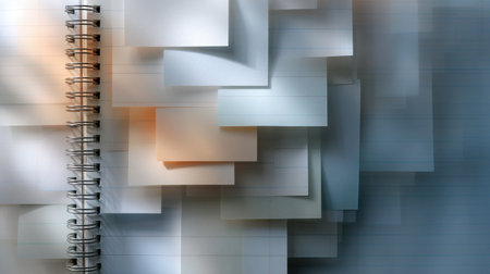 A dynamic and artistic rendering of stacked papers in motion, featuring a vibrant spectrum of colors blurred into an abstract form, with gentle light casting shadows.