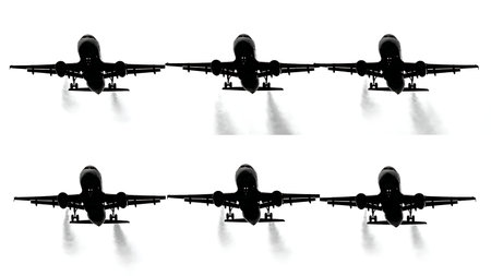 Five Passenger Airplanes In Formation Isolated on a White Background.