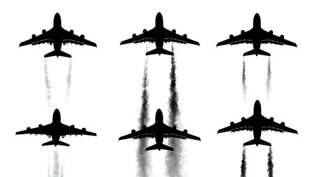 Airplane with Contrail / Vapor Trail Silhouette Set isolated on plain white background.