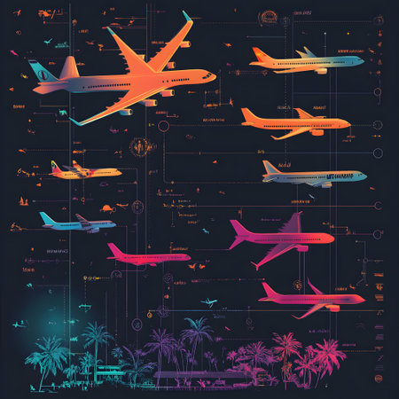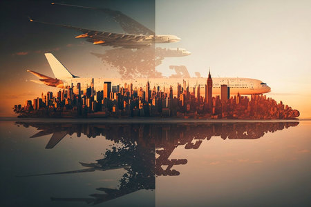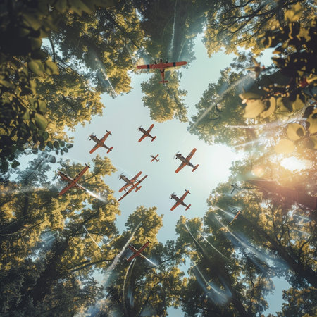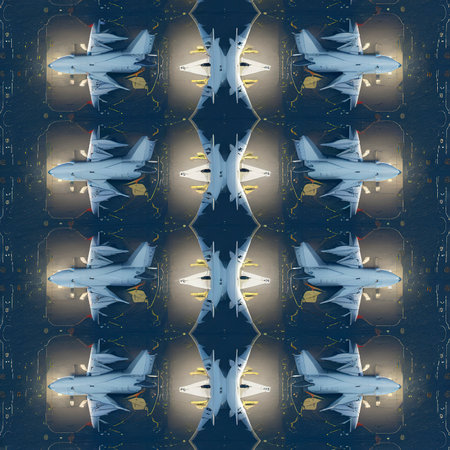 Witness the mesmerizing sight of various types of airplanes united in a breathtaking night sky. These magnificent aircraft illuminate the darkness with the vibrant trails of their engines, creating a spectacle reminiscent of shooting stars. The interplay between celestial wonders and human-made transportation is beautifully captured in this scene, as the airplanes soar through the vastness of space, their silhouettes gracefully intertwined like constellations of their own. In the background, a bustling airport comes to life, with runway lights guiding the airplanes towards their anticipated destinations. Prepare to be awe-struck by the magnificence of this cosmic atmosphere.