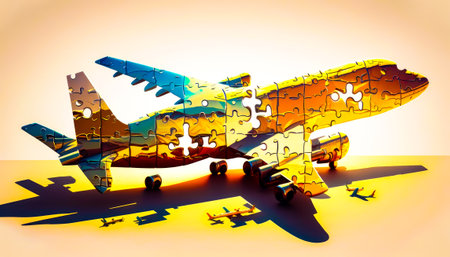 Jigsaw puzzle with an airplane on it. Generative AI.