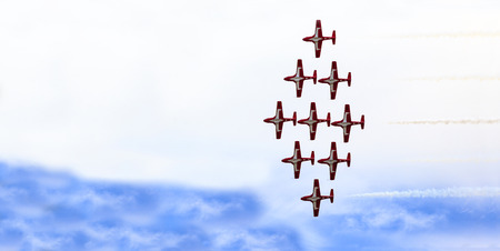 LETHBRIDGE CANADA - JUN 25, 2015: The Snowbirds Demonstration Team demonstrate the skill, professionalism, and teamwork of Canadian Forces personnel during the Wings Over Lethbridge.