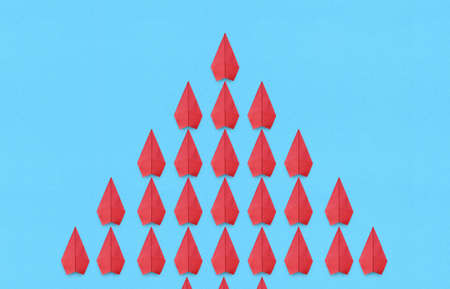Arrow with red paper planes, Leadership, teamwork and organization concepts