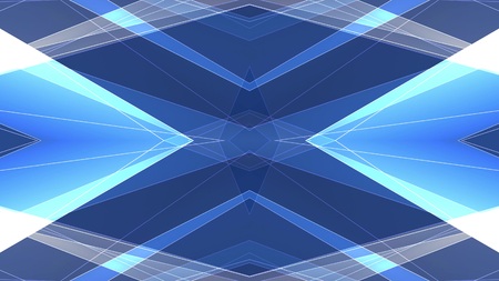 An abstract composition created from overlapping layers of sharp, angular geometric shapes in shades of blue and white. The forms are reminiscent of folded paper planes or shards, with precise edges and intersecting planes creating a sense of depth and dynamism. The lighting casts subtle shadows, highlighting the crispness of the forms and the clean aesthetic. is backgrounds, or as a representation of modern, sharp concepts.