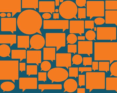 A vibrant arrangement of speech bubbles and geometric shapes in shades of blue, orange, and yellow creates a lively and engaging visual. This playful composition symbolizes communication and creativity, inviting viewers to explore the dynamic interplay of colors and forms.