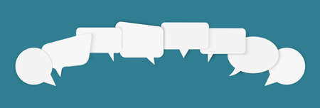 Abstract composition with white speech bubbles on background. for communication, social media, dialogue, messaging, or discussion concept designs.