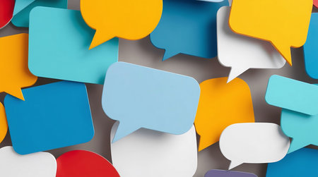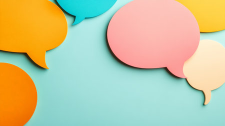 An abstract composition showcasing various colorful speech bubbles overlapping each other, creating a dynamic and engaging visual experience perfect for modern communication themes.