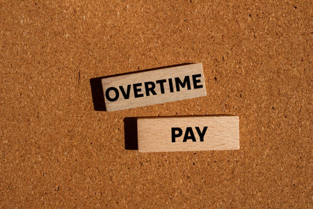 Overtime pay message written on wooden blocks on brown background. Conceptual overtime pay symbol. Copy space.