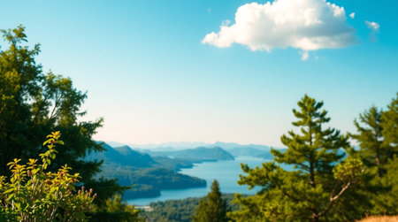 panoramic view of the lake and mountains in a sunny day