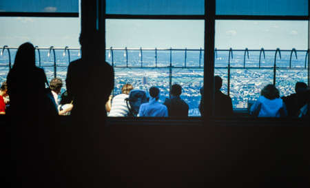 CHICAGO, IL - CIRCA MARCH, 2016: visitors at John Hancock Center's observatory. The John Hancock Center is a supertall skyscraper at 875 North Michigan Avenue, Chicago.