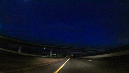 Driving on Interstate highway I25 at night.
