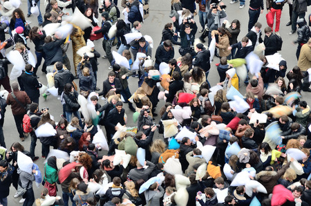 Delhi, India; 14th Mar 2015 - Crowd of young students, men and women watching a show in Delhi