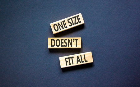 One size does not fit all symbol. Concept words One size does not fit all on beautiful wooden blocks. Beautiful black background. Business one size does not fit all concept. Copy space.