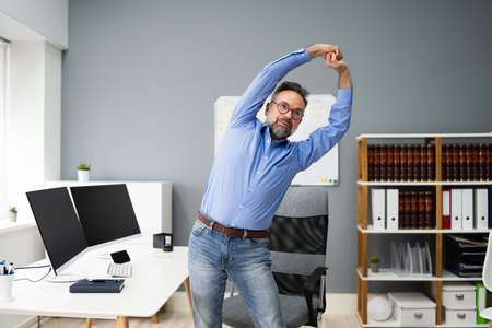 Stretch Exercise Workout At Office Business Desk