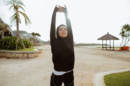 fitness muslim woman runner stretching