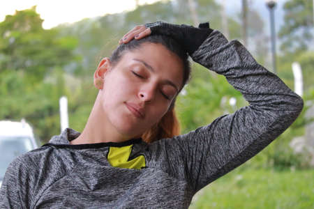 Young athletic girl wearing sportswear during a outdoor stretching exercise