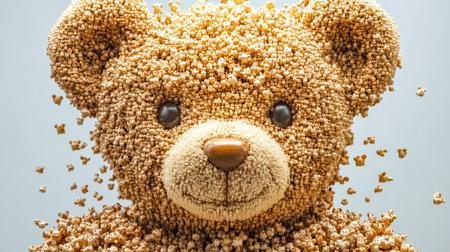 Large teddy bear composed of countless tiny teddy bears on light blue background