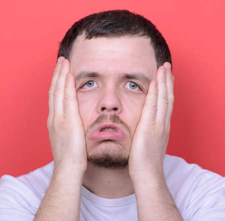 young man isolated on background with expression of pain