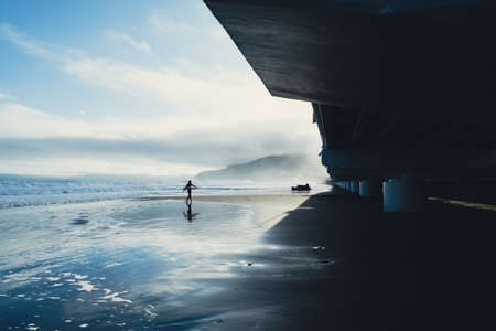 This compelling image captures the dynamic flow of water through a concrete tunnel, with waves crashing and natural light filtering in, evoking a sense of adventure.