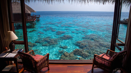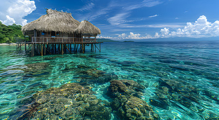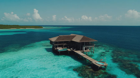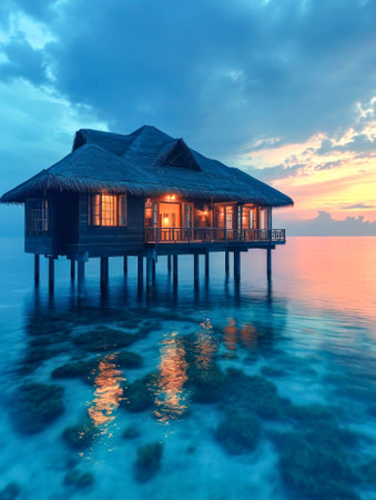 Experience the ultimate tropical escape with this stunning overwater bungalow, surrounded by crystal-clear waters and vibrant coral reefs, perfect for relaxation.