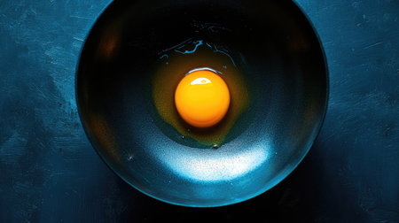 This stunning image showcases a single raw egg yolk in a clean bowl against a dark background, emphasizing its vibrant color and smooth texture. Perfect for culinary visuals.