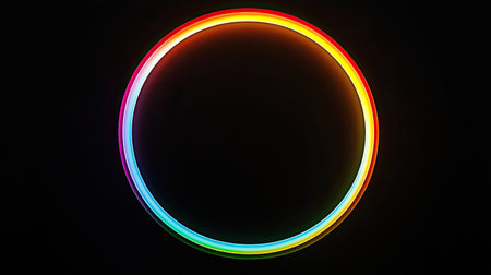 Colorful fusion spectrum circle on black background. Flame spiral series.