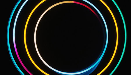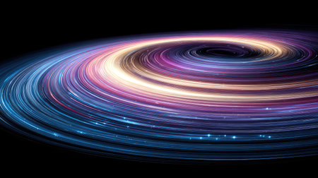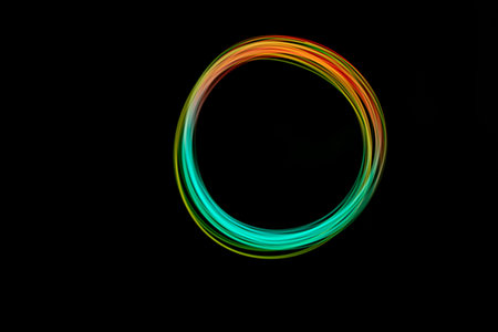 A vibrant, swirling light circle illuminates a dark area, demonstrating creativity and the beauty of movement in a captivating form.