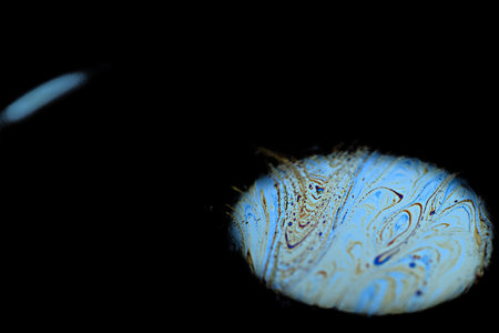 Fluid art made of colorful soap bubble film. Trendy Inkscape blurred background. Alien space planets art. Selective focus.