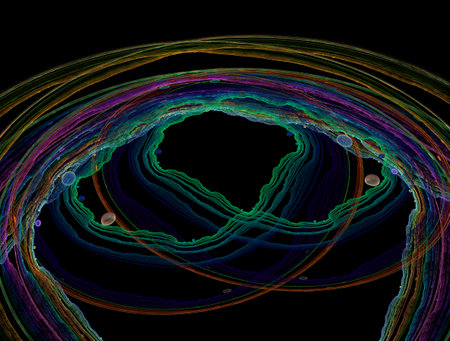 Colorful planet with black background, 3d rendering. Computer digital drawing.
