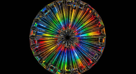 A vibrant and intricate crystal formation with a kaleidoscope of colors