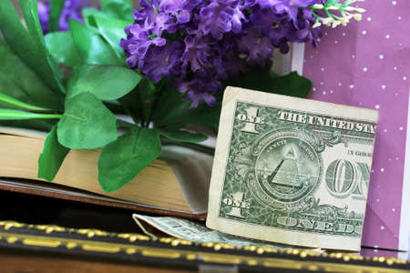 1 dollar bill on a dark background. Close up. The concept of saving money