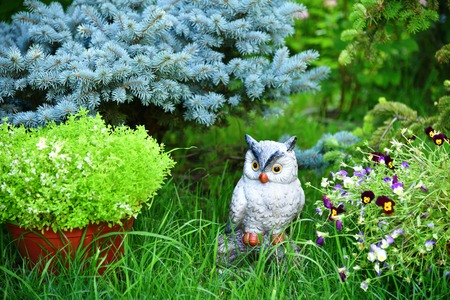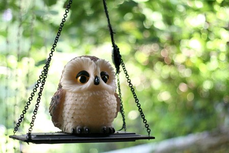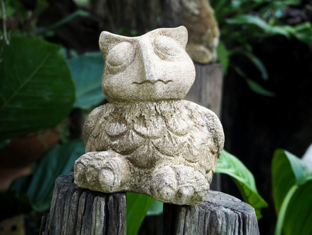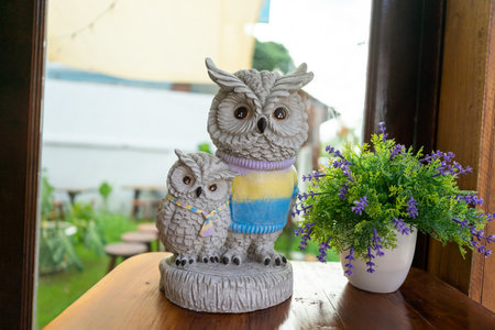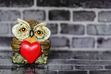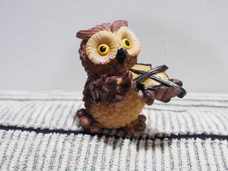 Cute little owl : small figurines of animals, stone figure statue, object macro , toy animals.