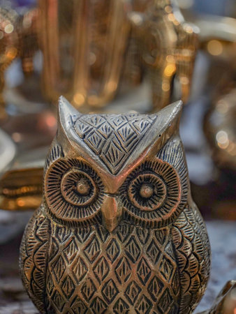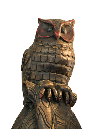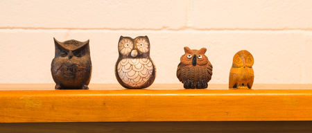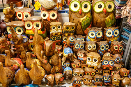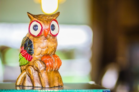 Colorful wooden carved owl doll shown on the showcase for sale in the market