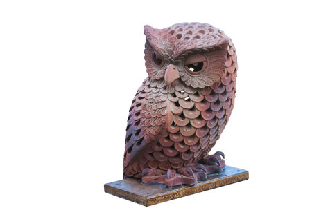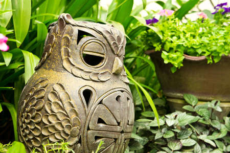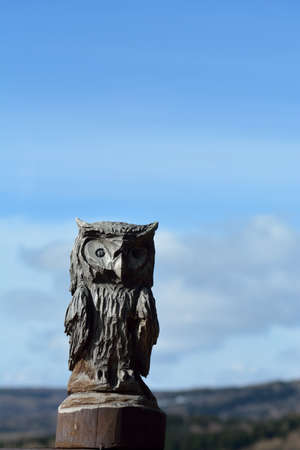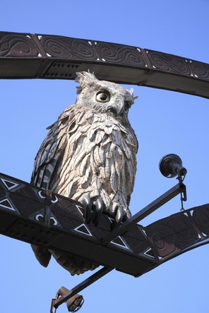 Statue of an Owl against a summer sky in Oslo botanical garden